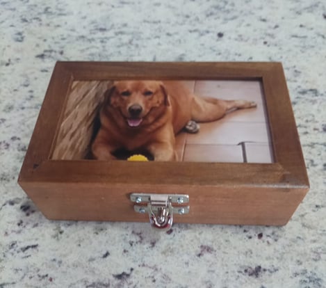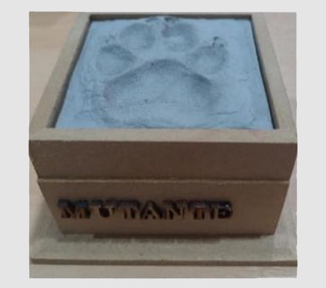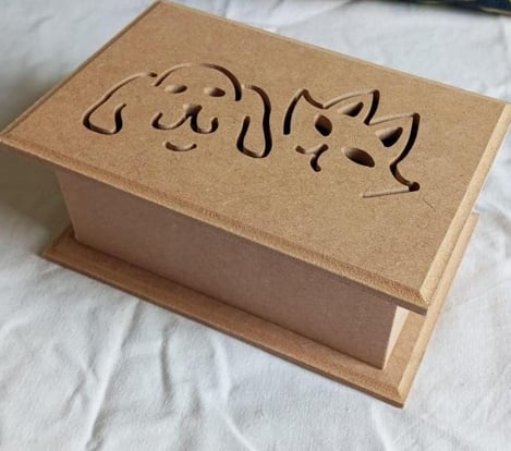 Urna em madeira MDF silhueta cão e gato com elástico.